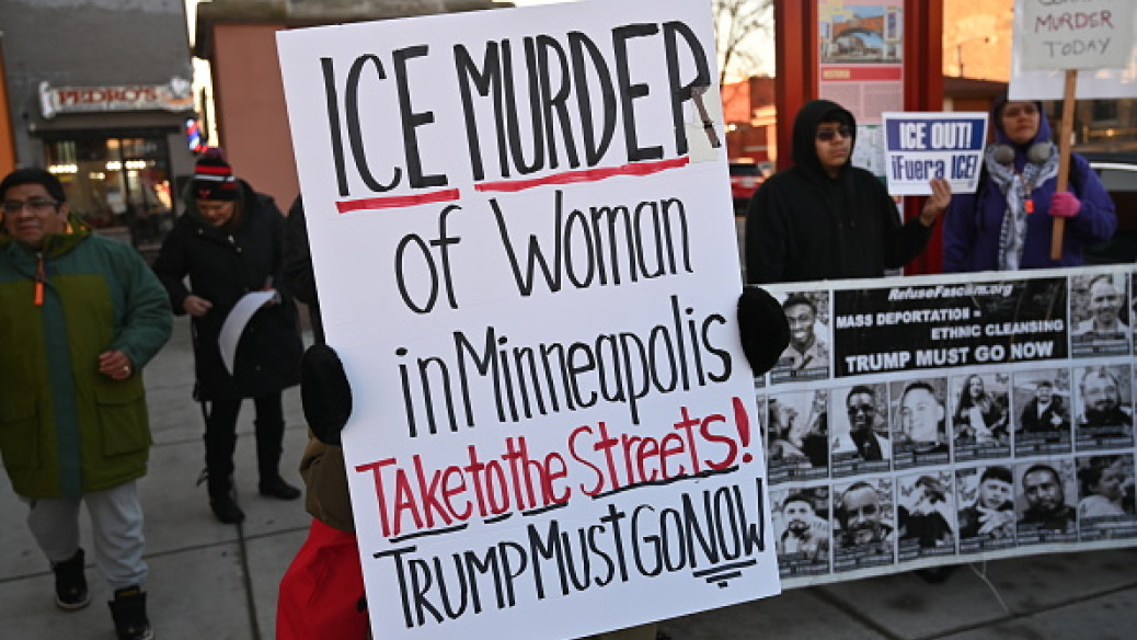 Thousands of protesters took to the frigid streets of Minneapolis after the shooting, holding signs reading "ICE out of MPLS," a common abbreviation for the city.